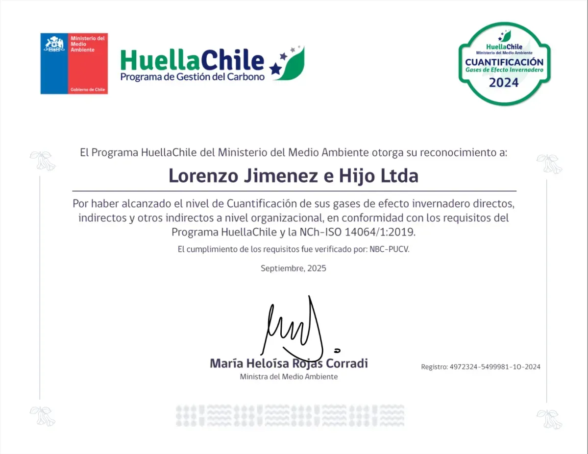 "Contamos con el apoyo profesional para cuantificar y verificar nuestra huella de carbono. Nos acompañaron durante todo el proceso, desde el levantamiento de información hasta la obtención del Diploma Oficial de HuellaChile. Fue una experiencia ordenada, clara y con un excelente nivel de compromiso."